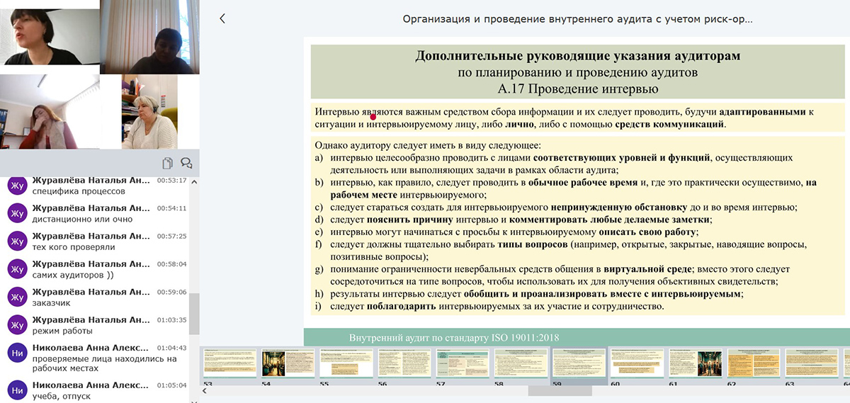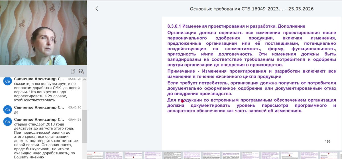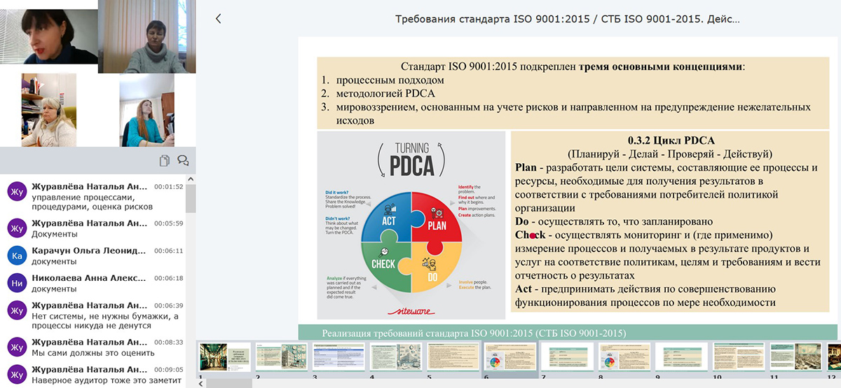 Обучение проходило в интерактивном формате. Преподаватель постоянно поддерживала обратную связь с аудиторией, стимулировала обсуждение практических ситуаций, предлагала участникам отвечать на вопросы и делиться собственным опытом. Общение активно велось через чат системы конференцсвязи Videozvonok.by, что позволило оперативно разбирать возникающие вопросы и уточнять сложные моменты. На все обращения участников давались развернутые и аргументированные ответы.