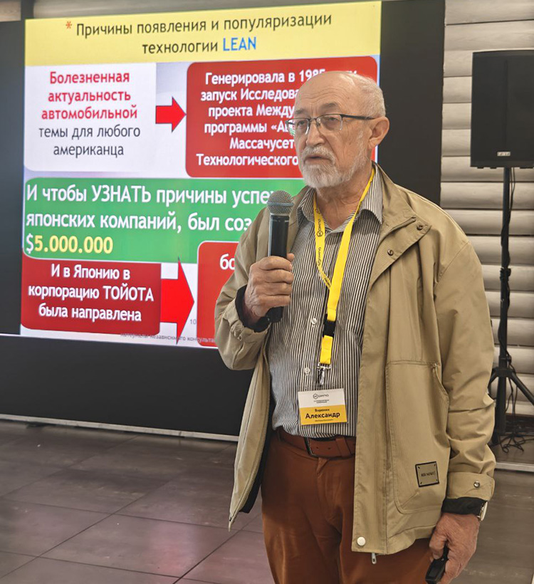 В своём выступлении Александр Дмитриевич Воронин раскрыл тему применения системы LEAN, KAIZEN, 5S, 6SIGM как базовых инструментов бережливого производства на мясоперерабатывающих предприятиях. Он отметил важность системного подхода к организации рабочих мест и формированию культуры непрерывных улучшений, которые помогают предприятиям снижать издержки, повышать производительность и качество продукции.