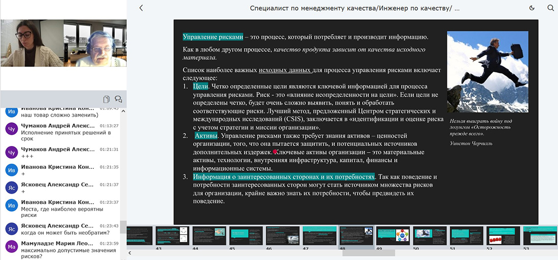 В ходе обучения участники задавали уточняющие вопросы по рассматриваемым темам. Преподаватель давал развернутые пояснения и рекомендации, опираясь на практический опыт внедрения и сопровождения систем менеджмента, что способствовало более глубокому усвоению учебного материала.